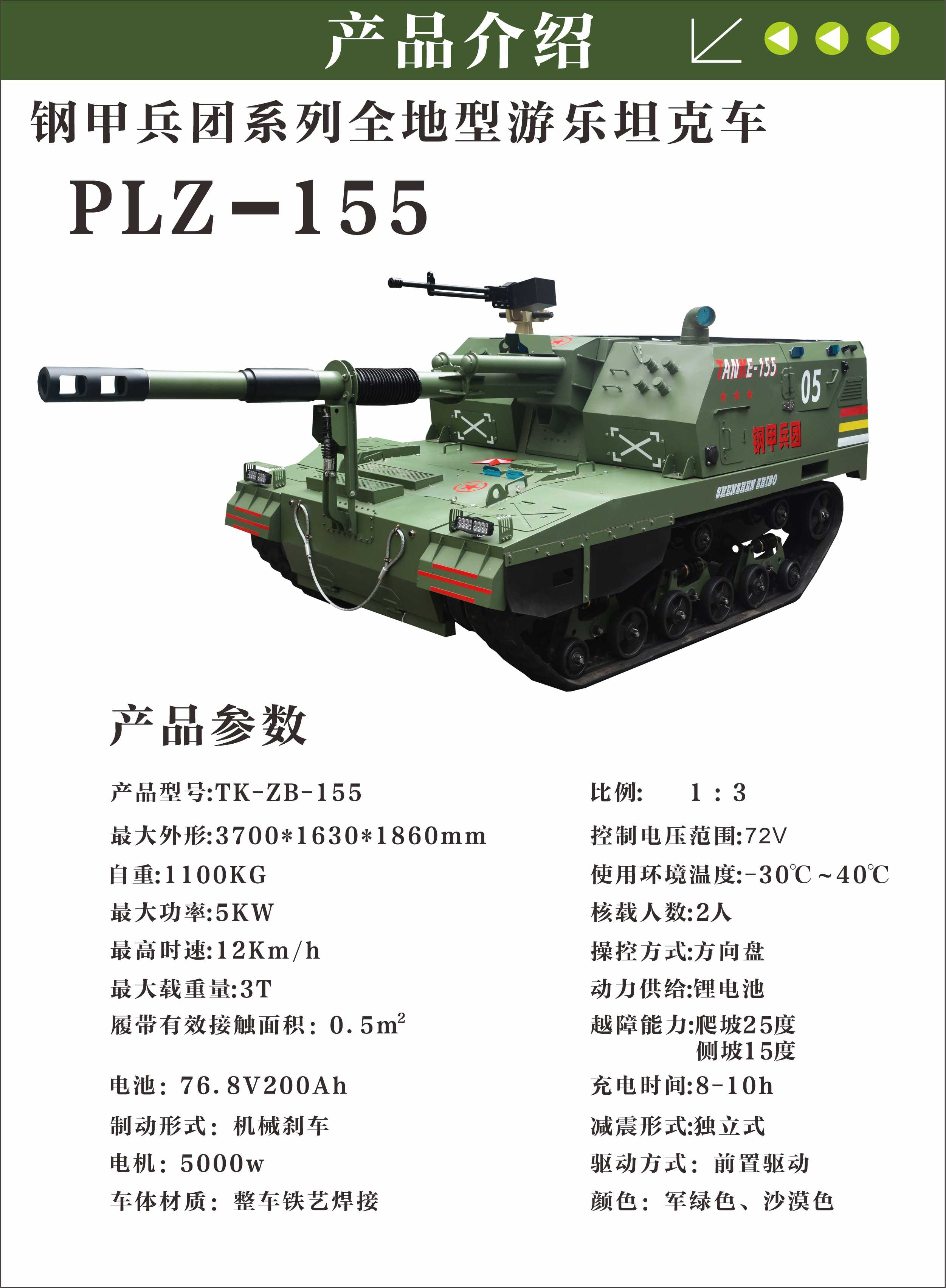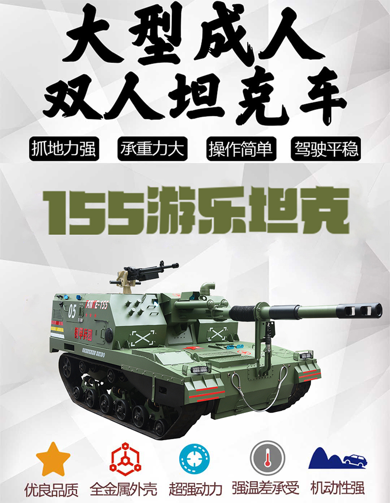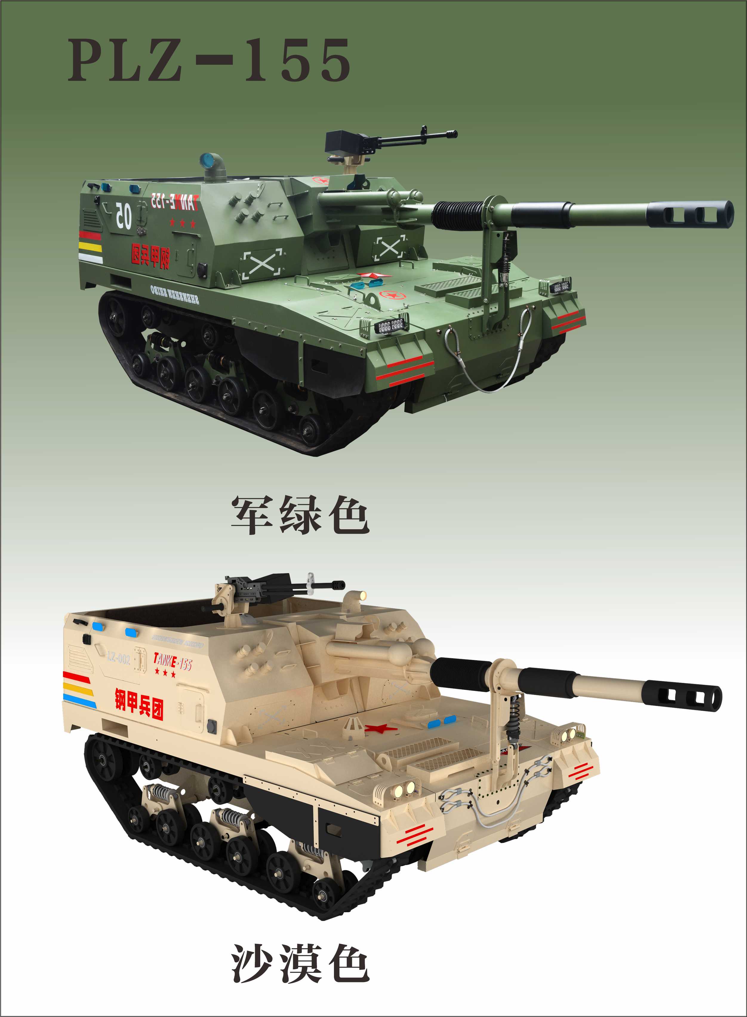 严格按照我军现役主战坦克PLZ-05式自行加榴炮 1:3 比例仿真制作,细节精致,质感十足。