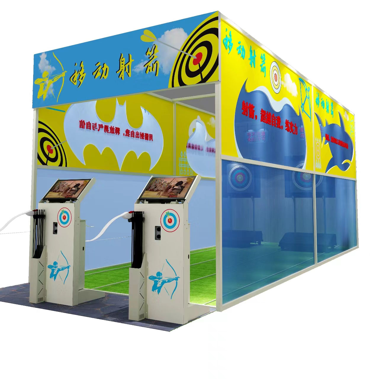移动射设备功能:通过靶车控制系统可以控制靶车的前后移动,靶车可以在任意位置停止,满足客人在任意距离进行射箭。当箭靶射满箭的时候按液晶机柜上面的控制器上的前进按钮,让靶车移动到最前面进行拔箭,同时不影响其它箭道的客人射箭,靶车上装有图像采集系统,通过线缆把图像传输到液晶机柜,通过液晶机柜我们可以清晰的看到射箭的环数,即方便又安全。