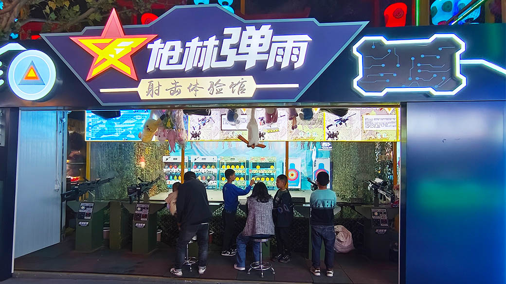 深圳市军博润达旅游发展有限公司陕西富平县投资的一个射击体验馆,该场地120个平方,搭配了十二套小型游乐气炮枪设备。其中有两台苏氏通用炮、两台闪电、两台雷霆、两台突击炮、两台狙击炮、两台幻影,靶牌方面有2台30圆心靶牌、两台积分靶牌、两台三层圆心靶牌、两台语音胸环靶牌、两台声光电酒瓶靶、两台声光电圆心靶。炮台:六个C型炮台、六个声光电炮台。